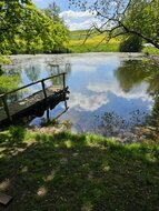 Der Hofeteich, wo auch eine befestigte Straße und dann ein Waldweg nach Reichenbach (Haselbachtal ) über den kleinen Keulenberg (390 m) führt.